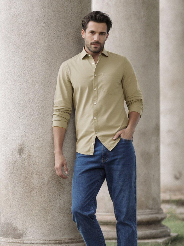 The breathable cotton ensures all-day comfort, while the smart full sleeves and tailored fit make it ideal for both formal and semi-casual occasions. Whether it’s for office wear or evening outings, this shirt delivers elegance with a modern edge.