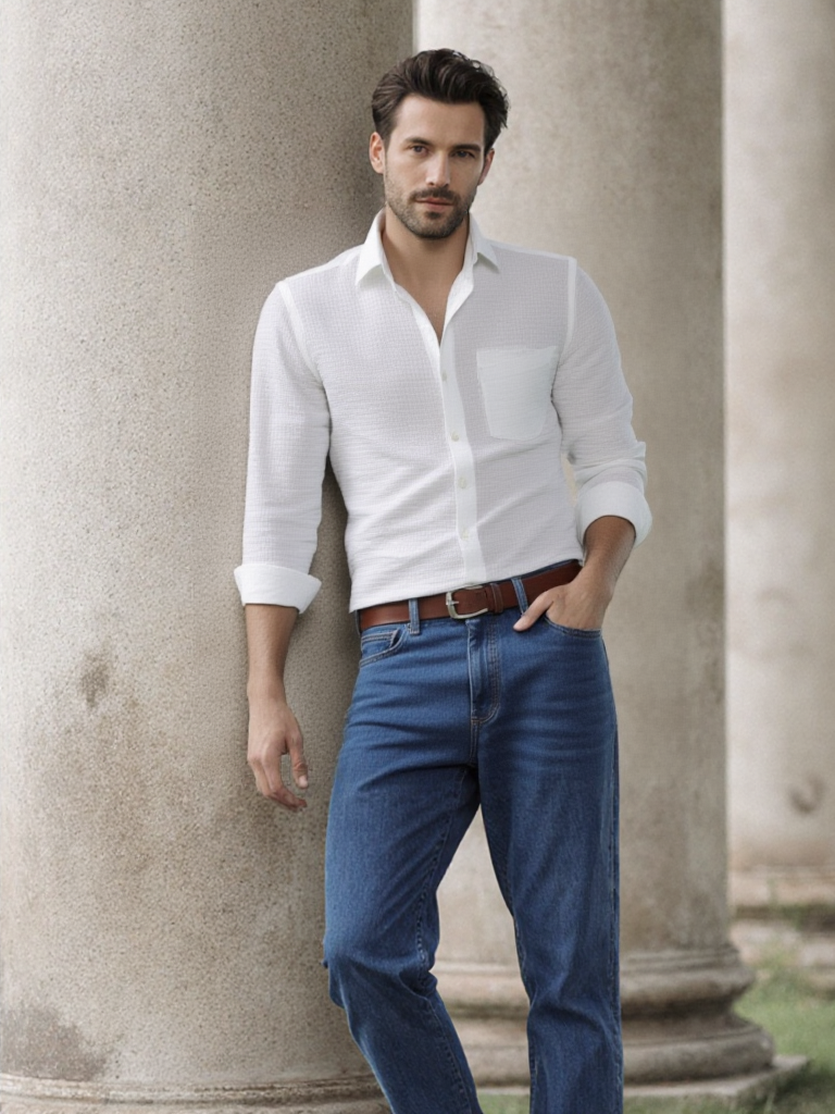 The breathable cotton ensures all-day comfort, while the smart full sleeves and tailored fit make it ideal for both formal and semi-casual occasions. Whether it’s for office wear or evening outings, this shirt delivers elegance with a modern edge.